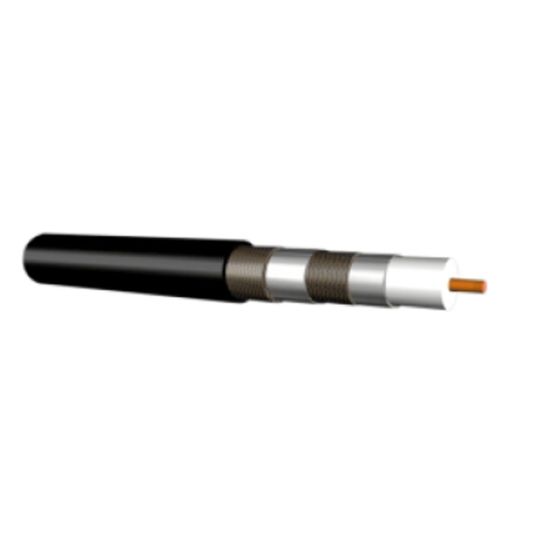 Coaxial Cable RG6 Quad Shield, 18 AWG, Inside: Bare Copper/Outside: Aluminium, Inner: 1.02 mm/Outer: 4.57 mm Conductor Diameter, 7.57 mm Overall Diameter, 1/1.02 mm Strands, PVC/Polyethylene Insulation, Black Sheath, 305 mtr Length, 80 deg C