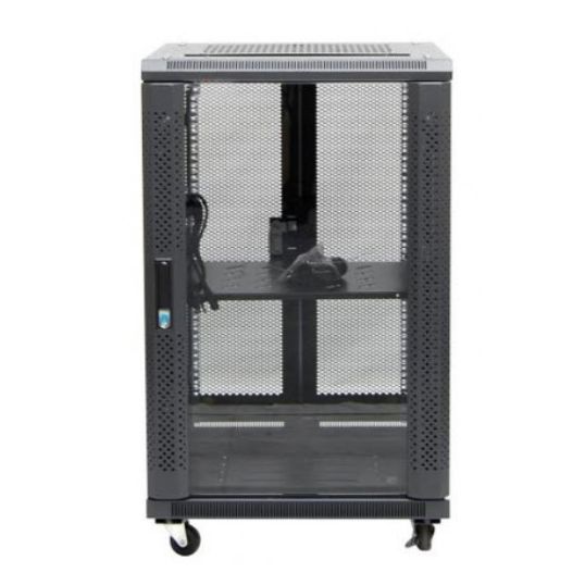 Data Server Cabinet, 1190mm Height, 600mm Width, 600mm Depth, Static: 800 kg, Number of Shelves: 1, IP20, 22RU, Door Type: Front: Glass, Rear: Perforated Steel, Honeycomb Style, Cold Rolled Steel, RAL 9005 Gloss Black, Powder Coated Finish, Square Mounting Hole