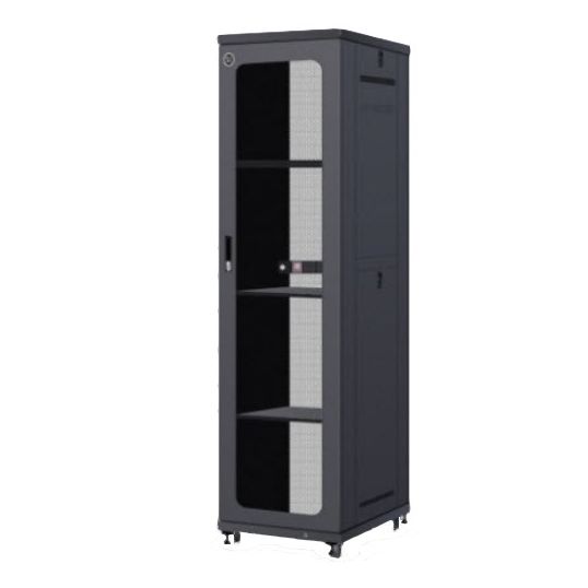 Data Server Cabinet Free Standing Fully Assembled, 2188mm Height, 600mm Width, 1000mm Depth, Stationary: 1000 kg, Number of Shelves: 3, Shelf Size: Fixed: 655mm Depth, 45RU, Free Standing Mounting, Black, Grounding Lug: Front and Back Door Frames, 127 kg, 660mm Preset x 950mm Maximum x 145mm Minimum Mounting Distance