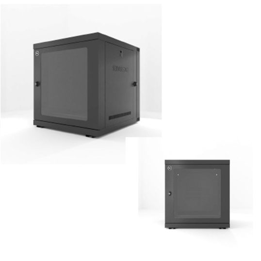 Wall Mount Server Cabinet Swing Frame Fully Assembled, 647mm Height, 600mm Width, 700mm Depth, Stationary: 80 kg, Number of Shelves: 1, Shelf Size: Cantilever: 300mm Depth, 12RU, Wall Mounting, Black, Grounding Lug: Front and Back Door Frames, 30 kg, 305mm Preset x 650mm Maximum x 145mm Minimum Mounting Distance