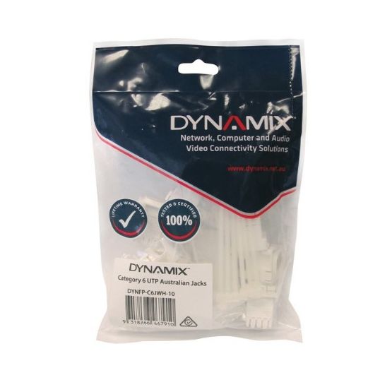 Dynamix Wall Plate Aus Jack 8P8C Cat6 K/110 Termination White 10 Pack