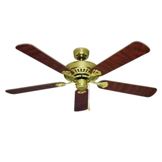 Ceiling Sweep Fan, Fan Size: 1300mm, 240 Volt, Motor Wattage: 60 Watt, 50 Hz, Control Type: 3 Speed Wall Pull Chain Switch, Air Flow Rate: 8021 cu-m/hr, 11 deg Blade Pitch, Motor Type: AC, Ceiling Rake: 11 deg, Number of Blades: 5, Ceiling Mounting, Metal Body, Plywood Timber Blade, Antique Brass Body, Walnut/Oak Blade, 385mm Height