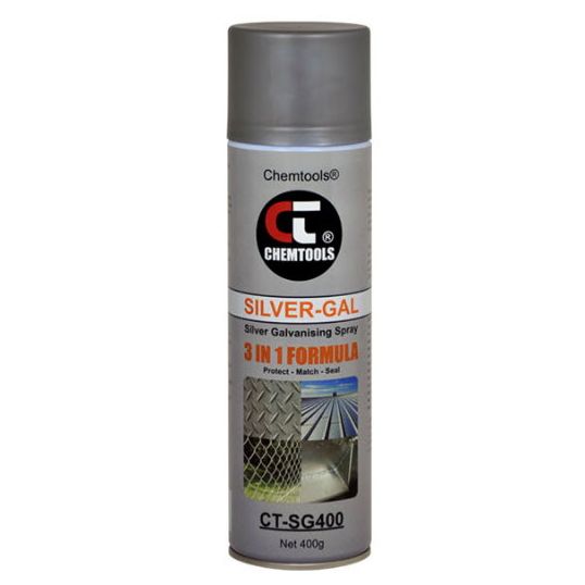 Galvanising Paint, 400 g, Aerosol Can Package Type, Aromatic Odour, Aerosol, Gloss Silver, Appearance: Silver Liquid, 10 min Touch Drying Time, Aerosol Application Method, Insoluble in Water, 091-0925 Specific Gravity, 25 sq-m/400 g Can Coverage, 2 hr Recoat Time, 85% RH Max Humidity, 15 to 40 deg C Application Temperature