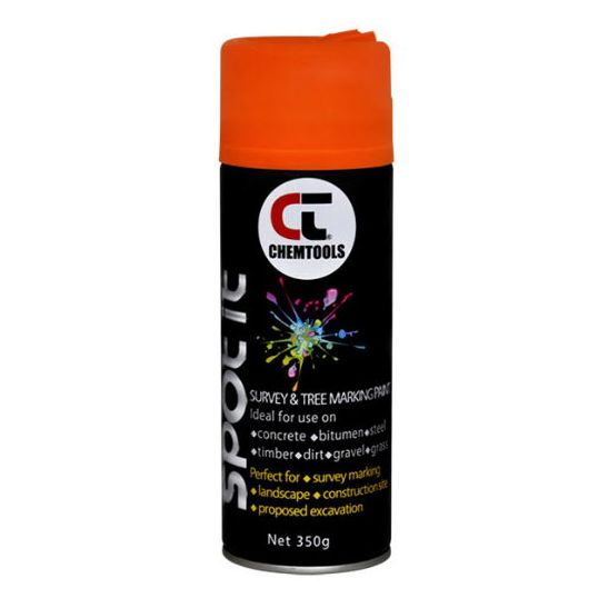 Survey and Spot Marking Paint, 350 g, Aerosol Can Package Type, Characteristic Aromatic Odour, Aerosol, Fluorescent Orange, Appearance: Opaque Liquid, 56 to 110 deg C at 100 kPa Boiling Point, Not All Ingredients Are Soluble in Water, 314 Vapour Density, 08 at 20 deg C Specific Gravity