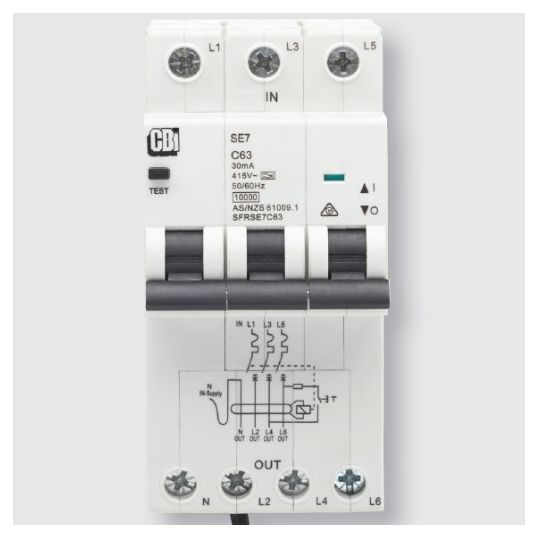 SFR Combination RCD Circuit Breaker RCBO 3P+N 10 Amp 415V AC 10 kA W/Leads
