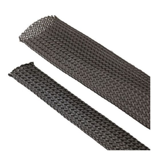 Braided Sleeve, 45 mm Minimum ID, 73 mm OD, 50 mm Nominal ID, Expansion Ratio: 1:2, Polyester Sleeve Material, Black, -50 to 150 deg C, 50 Mtr Roll Length