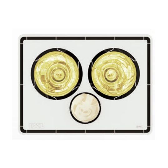 Bathroom Exhaust Fan/Light/Heater, 296 mm, 240 Volt, 2 x 275 Watt Infrared Lamp Heat Source, 2 x 275 Watt Infrared Lamps, Square, 310 cu-m/hr, 275 Watt Lamp, White Body, 296 mm Height, 381 mm Width, Additional