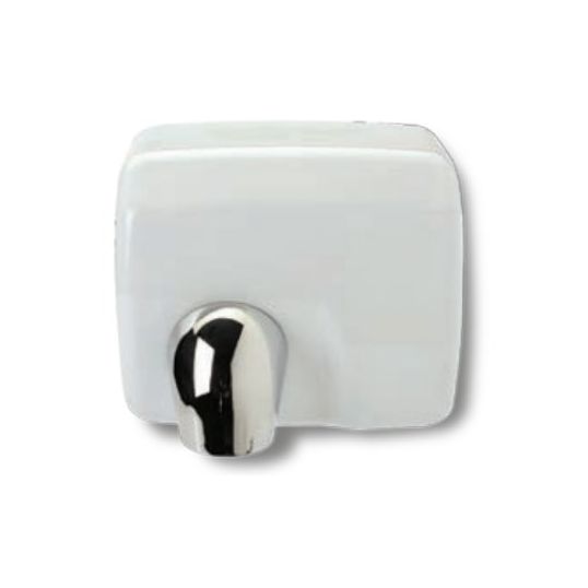 Hand Dryer, 220-240 Volt, 50 Hz, 270 cu-m/hr Air Speed, 74 dB at 1 mtr, 8300 rpm Motor Speed, IP33, White, Epoxy Paint, 270 mm Height, 240 mm Width, 212 mm Depth