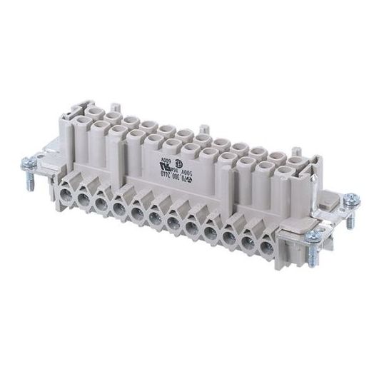 Socket Insert Female, 500 Volt, 16 Amp, 24 Pole, 22-14 AWG, Screw, IP54, Copper Alloy, Grey, -40 to 120 deg C