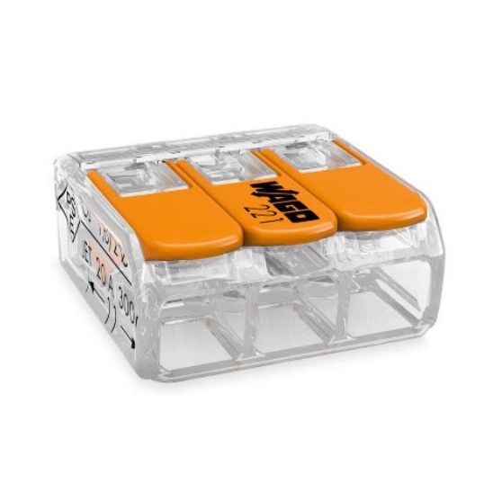 Splicing Connector, 450 Volt, 32 Amp, 4 mm Connector Capacity, Cage Clamp Connection, 5 Pole, 5 Wire, Lever Actuator, Copper Conductor, Transparent, 105 deg C, 18.6 mm Length, 29.9 mm Width, 8.3 mm Height
