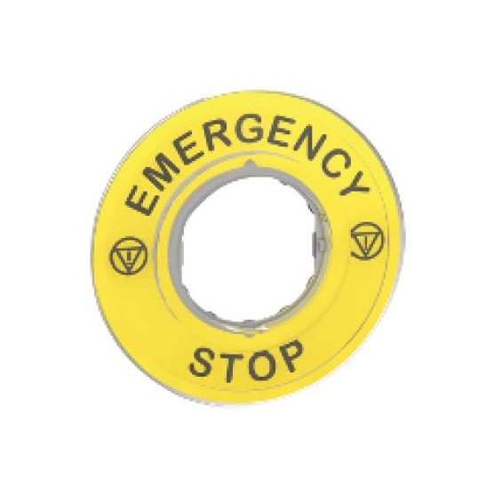 Schneider Operator Legend Plate 60mm Diameter Plastic Black EMERGENCY STOP For XB4 & XB5