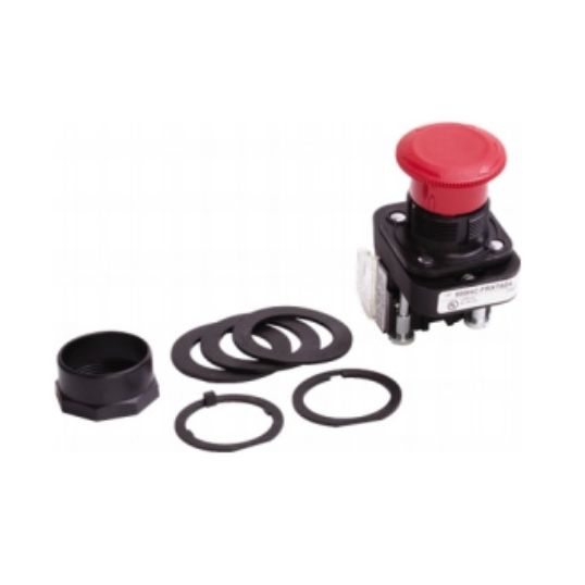 Pushbutton, 10 Amp, 1 Normally Closed Late Break Configuration, Non-Illuminated Action Operator Action, Red Flush Operator Profile, Mushroom Head, Push-Pull/Twist Reset Type, Screw Terminal, 0.68 Nm Tightening Torque, Flush Mounting, 30.5 mm Mounting Diameter, IP2X/65/66, Plastic Housing, Red, -40 to 55 deg C, 30.5 mm, 41.3 mm Diameter