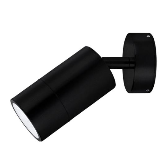 LED Wall Pillar Light Single Adjustable, Built-In LED, 12 Watt, 240 Volt AC Input Voltage, 50 Hz Input Frequency, Round, Tri-Colour, 3000/4000/5500K, 1080/1140/1200 lm, 60 deg Beam Angle, Non-Dimmable, >80 CRI, Surface Mounting, IP65, Aluminium, Black, Powder Coated, 75 mm Width, 218 mm Height