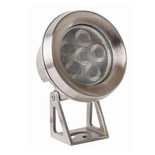 Pond Light (Submersible), LED, 15 Watt, 12 Volt DC, MR16 Base, 3000K, 843 Lumens, 40 deg Beam Angle, CRI: >=80, Non-Dimmable, IP68, 6000 mm Cable Length, Stainless Steel 316, Red, Green, Blue, 115 mm Diameter, 148 mm Length, 70 mm Width