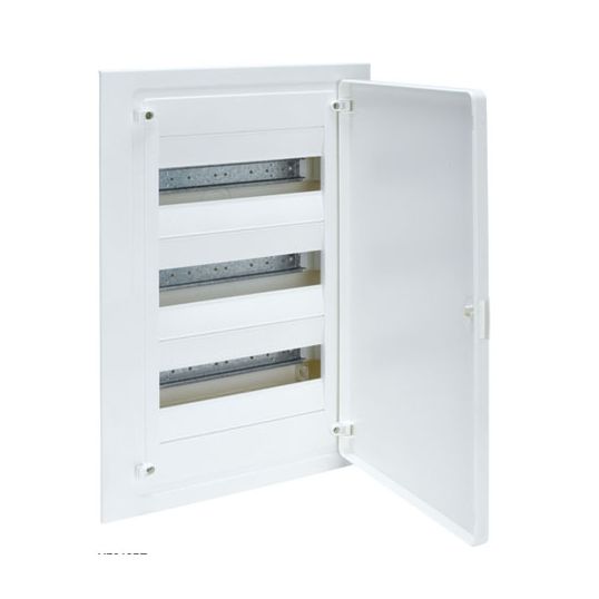 Small Distributor, 400 Volt, 80 Amp, Lockable Door, Flush Mounting, IP40, Plastic, Pure White, Powder Coated, 543 mm Height x 352 mm Width x 97.5 mm Depth