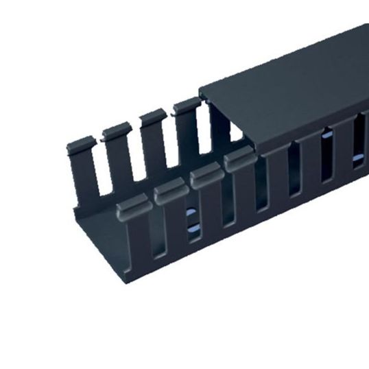 Slotted Duct & Lid Open Slot, PVC, Black, 2 mtr Length, 60 mm Width, 60 mm Depth