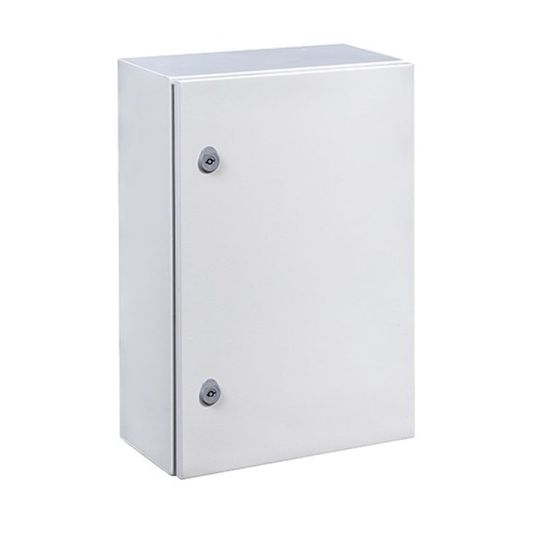 Enclosure Single Door General Purpose Industrial, 1 Door, Wall Mount, IP66, Mild Steel Housing, Mild Steel Door, Galvanised Sheet Steel Mounting Plate, RAL 7035 Light Grey, UV Tolerant Polyester Powder Coated, 600 mm Height, 600 mm Width, 200 mm Depth