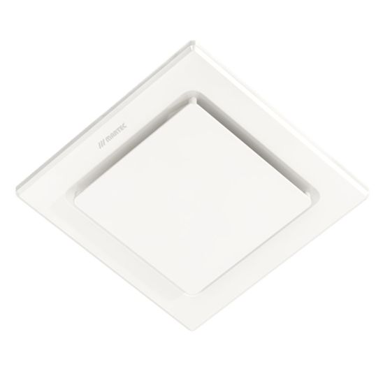 Exhaust Fan, 325 mm, 200-240 Volt, 28 Watt, 50 Hz, Square, 320 cu-m/hr, 295 mm Cut-Out, 150 mm Duct, 220 mm Min. Install Depth, <45 dB, IPX4, Ceiling, Mounting, Plastic, White, 361 mm Length, 325 mm Width, 230 mm Height