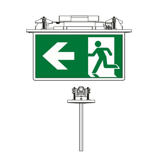 Emergency Exit Sign, 0.75 Watt LED, 230 Volt AC Input Voltage, 50 Hz Input Frequency, LED, 24 mtr Viewing Distance, 100000 hrs, Maintained Operating Mode, Recessed Mounting, IP20, LiFePO4, Polycarbonate/PMMA, White, 0 to 40 deg C, 365 mm Length, 95 mm Width, 265 mm Height