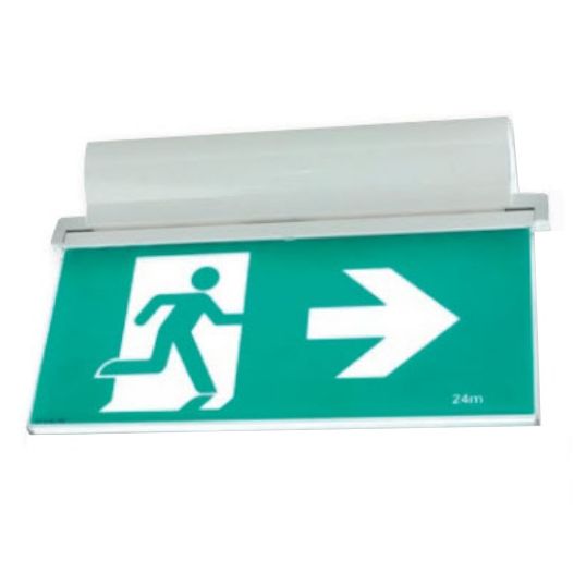 LED Emergency Exit Light, 3 Watt, 230-240 Volt AC, 50 Hz, LED, 50000 hr Average Lamp Life, Maintained, Injection Moulded Acrylic Diffuser, Viewing Distance: 24mtr, Surface Mount, 10 to 40 deg C, 6.4 Volt 0.57 Ah Lithium-Ion with PCM-B, Injection Moulded Polycarbonate, IP21, 355 mm Width, Axiom Wireless