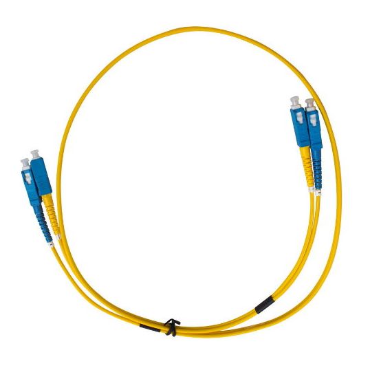 Fibre Optic Patch Lead, Duplex Single-Mode, Connector A: SC, Connector B: SC, 2 Fibre Count, Single-Mode, Fibre Type: OS2, 5 mtr Cord Length, 3mm OD, LSZH Sheath, Yellow Sheath