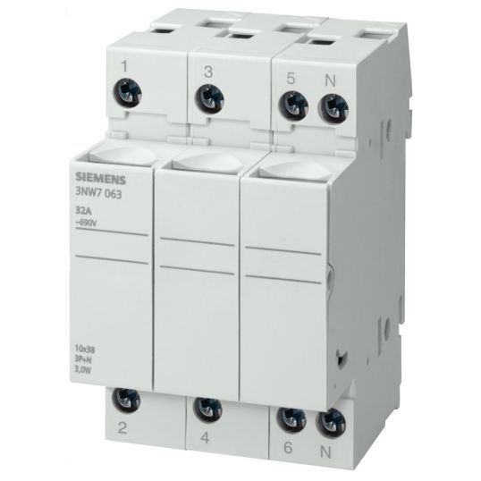 Siemens Sentron Cylindrical Fuse Holder 3 Pole 32A 690V 10x38mm