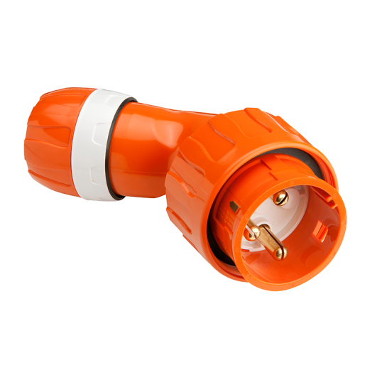 Plug Angled Body Weatherproof, 1 Phase, 32 Amp, 250 Volt AC, 3 Pin Round, Chemical Resistant Orange, IP66, Terminal Capacity: 2.5 to 25 mm, Cable Gland, M40 Cable Gland, PBT, -25 to 75 deg C, 78 mm Height, 130 mm Width, 168 mm Depth