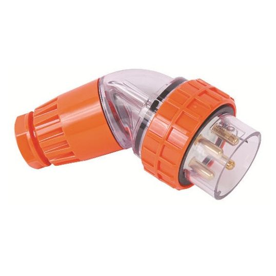 IPD Plug Angled Body Weatherproof 3Ph 10A 500V 5 Pin Round Orange IP66