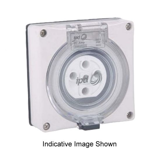 Socket Outlet Less Enclosure, 3 Phase, 32 Amp, 500 Volt, 5 PIn Round, Grey, IP66, Polycarbonate, Screw Terminal, Terminal Capacity: 16 mm, 2 x M25, 1 x M32, 101 mm Height, 101 mm Width, 101 mm Depth
