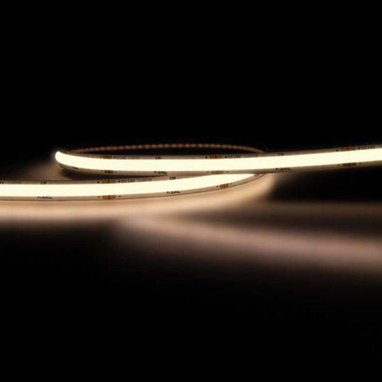 COB LED Strip Light, 24 Volt DC Input Voltage, 10 Watt/m, 900 lm/m, 4000K, 90 CRI, 140 deg Beam Angle, Cool White, 512/m LED, IP65, 25 deg C, 20 mtr Length, 8 mm Width, 2 mm Height
