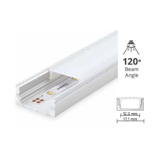 LED Strip Light Housing, 120 deg Beam Angle, Surface Mounting, IP40, 2000 mm Length, 17.1 mm Width, 8 mm Height