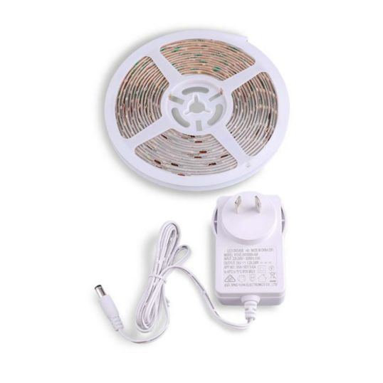 LED Strip Kit, 230 Volt AC Input Voltage, 4.8 Watttr, 50 Hz Input Frequency, 24 Watt, 1900 lm, 4000K, >80 CRI, >50000 hrs, 60/mtr LED, IP54, 40 deg C, 5000mm Length, 8mm Width, 3mm Height