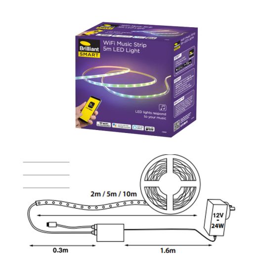 Brilliant Lighting LED Strip Light WiFi Music 24W RGB 10m
