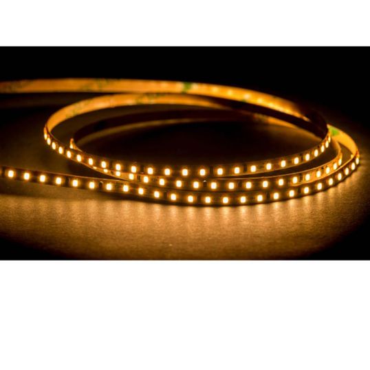LED Strip Light, 24 Volt DC Input Voltage, 4.8 Watt/m, 390 lm, 3000K, >80 CRI, >50000 hrs, Dimmable, 120 deg Beam Angle, 180/m LED, Aluminium Profile or Heat Sink Mounting, IP20, 0 to 60 deg C, 5 mtr Length, 4 mm Width, 2 mm Height