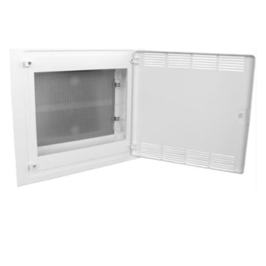 Home Networking Enclosure, 36 Modules, IP40, Flush, Plastic, White, 418mm Height x 460mm Width x 97.5mm, with Vented Door