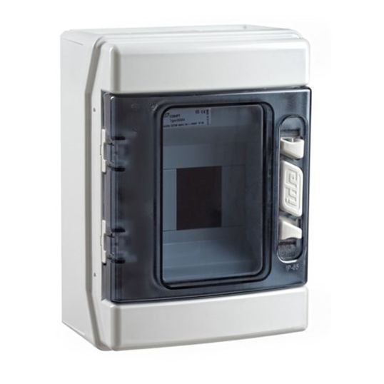 LOAD CENTRE 4P IP65 1X4 MOD TRANS LID RAL 7035 C/W E&N BAR