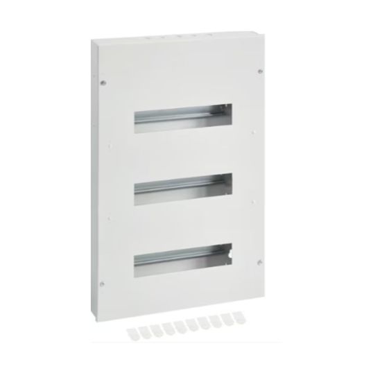 DIN Surface Metal Box, 230-415 Volt, 3 Row, 36 Module, IP30, Surface Mounting, For Use With DIN Equipment, Steel, Grey White, 609 mm Height x 369 mm Width x 71 mm Depth