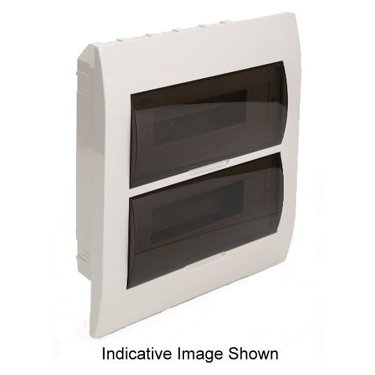 Load Centre Enclosure, 240-415 Volt, 100 Amp, 2 Row, 24 Module, IP40, Flush Mounting, For Use With MOD6 MCBs/RCDs and RCBOs Miniature Circuit Breakers, ABS, White, 358 mm Height x 305 mm Width x 105 mm Depth, White Door