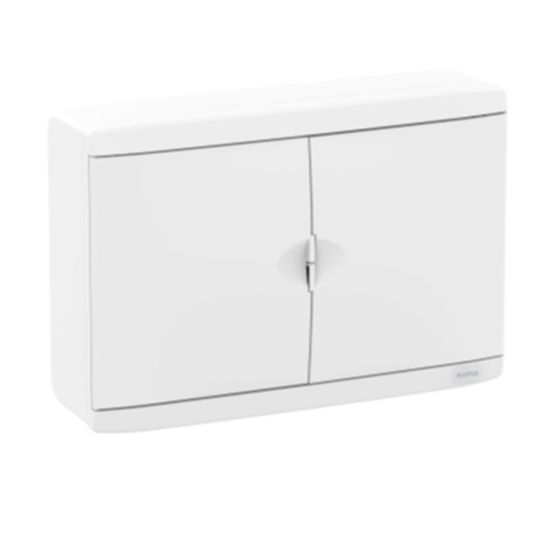 Switchboard Enclosure, 100 Amp, 1 Row, 15 Module, IP40, Surface Mounting, For Use With DIN Equipment, Plastic, White, 258 mm Height x 376 mm Width x 120 mm Depth