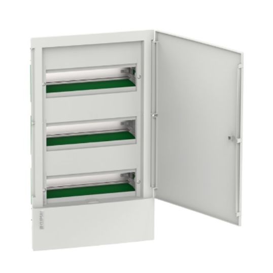 Switchboard Enclosure Consumer, 63 Amp, 3 Row, 36 Module, IP40, Flush Mounting, For Use With Modular Device, Technoplastic, White, 502 mm Height x 294 mm Width x 98 mm Depth, Plain Door