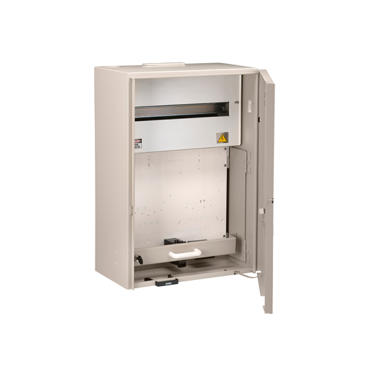 Meter Box with Service Fuse Lock Victoria, 21 Module, Ventilated Removable Door, Padlock, 680 mm Enclosure Height, 470 mm Enclosure Width, 280 mm Enclosure Depth, 380 mm Panel Height, 400 mm Panel Width, Knock-Out Top and Bottom/Knock-Out Rear Cable Entry, IP23, Surface Mounting, Iron, White, Galvanised