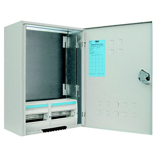 Meter Box Northern Territory, 24 Poles, 688mm Height, 485mm Width, 278mm Depth, 480mm Panel Height, 461mm Panel Width, Padlock Lock, IP23, DIN, Steel, RAL 7035, Galvanised