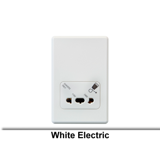 Universal Shaver Outlet, 110/240 Volt AC, 1 Gang, Flush Mount, Screw Connection, Plastic, White Electric, 116 mm Height, 76 mm Width, 57 mm Depth