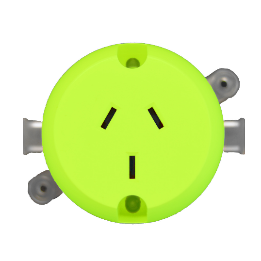 Surface Socket, 250 Volt Switch, 10 Amp, 3 Pin Polarized, 1 Gang, Rear Screw Connection, Surface Mounting, Green, 59 mm Diameter, 51 mm Depth