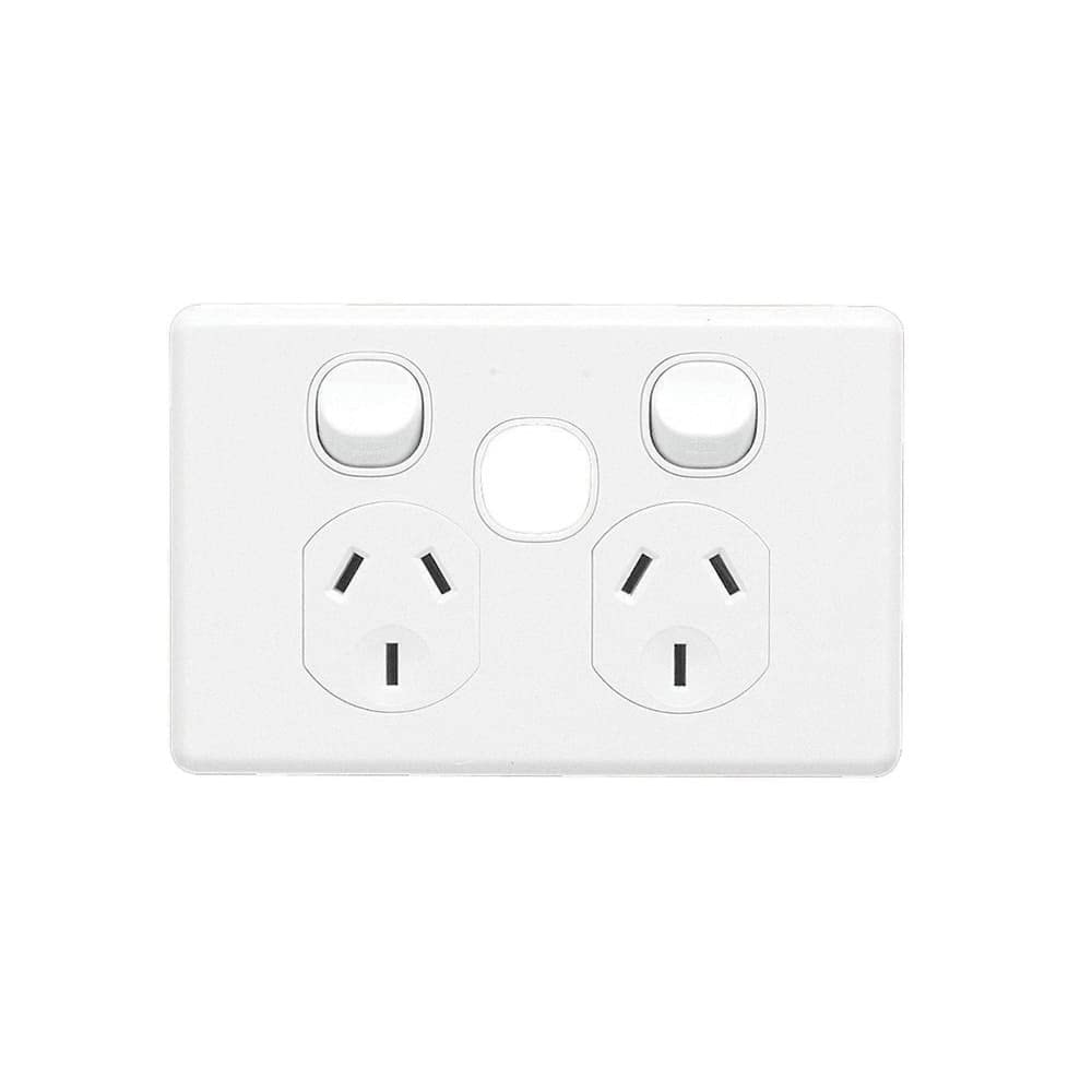 • Clipsal Double Power Point Flush Mount Standard 10A 250V 1 Pole 1 Extra Switch Less Mechanism Horizontal White