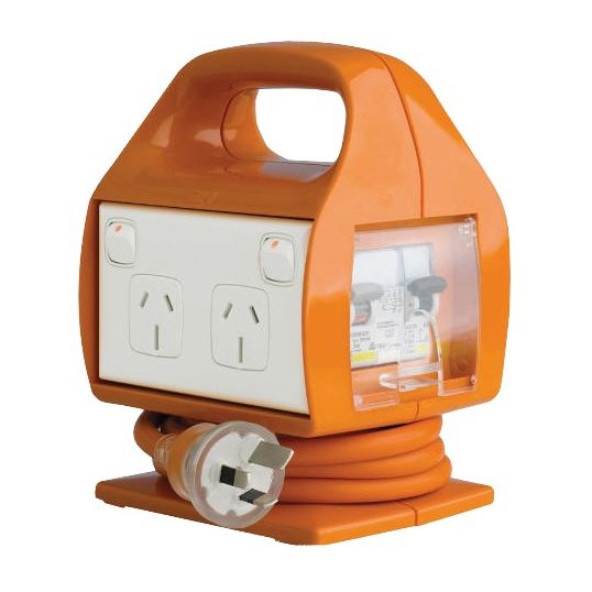Portable Power Outlet Power Outlet RCD/MCB Protection, 230-240 VAC, 15 Amp, 3600 Watt, 50 Hz, 30 mA Trip Sensitivity, 30 ms Typical Trip Time, 4 Gang, 1.8 mtr Cord Length, IP33, Orange