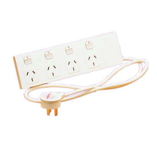 Powerboard Individual Switch Surge Protection, 230-240 VAC, 10 Amp, 2400 Watt, 50 Hz, Yes, 4 Gang, 175 J, 1.8 mtr Cord Length, Wall Mounting, White