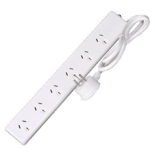 Powerboard Overload Protection, 230-240 VAC, 10 Amp, 2400 Watt, 50 Hz, 6 Gang, 0.9 mtr Cord Length, White