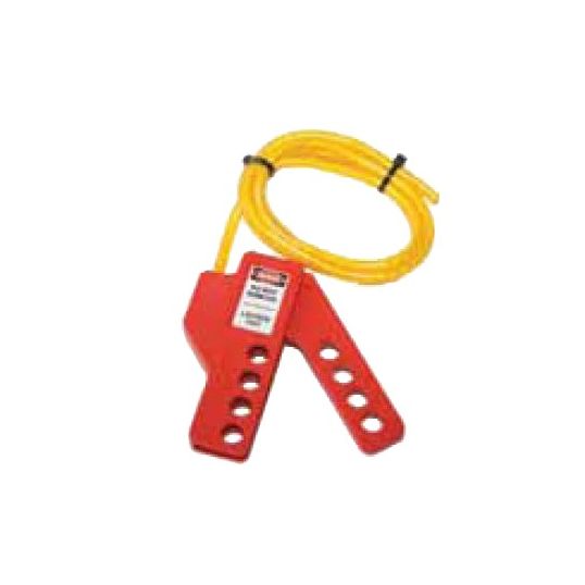 Cable Lockout, 8 mm Hole Diameter, 4 Hole, Nylon Plastic/PVC Coated Steel Wire Cable, Red Handle/Blue Cable, 8.5 mm Shackle Diameter, 1 mtr x 5 mm, 1 Pack