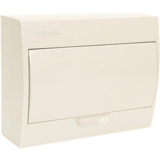 Load Centre Enclosure, 240-415 Volt, 100 Amp, 1 Row, 8 Module, IP40, Surface Mounting, For Use With MOD6 MCBs/RCDs and RCBOs Miniature Circuit Breakers, ABS, White, 200 mm Height x 185 mm Width x 94 mm Depth, White Door